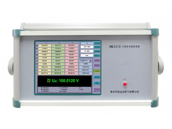 HN3310 是一款高精度的交流标准仪器,可在三相 Y/V 等各种接线方式下,同时测量回路中的多个电量,包括:电压、电流、频率、相位、谐波、有功功率、无功功率、视在功率、功率因数、有功电能、无功电能;准确度等级为 0.01 级。该表不仅适用于检定三相交流标准源,还可作为三相电能计量的标准表,应用十分广泛。